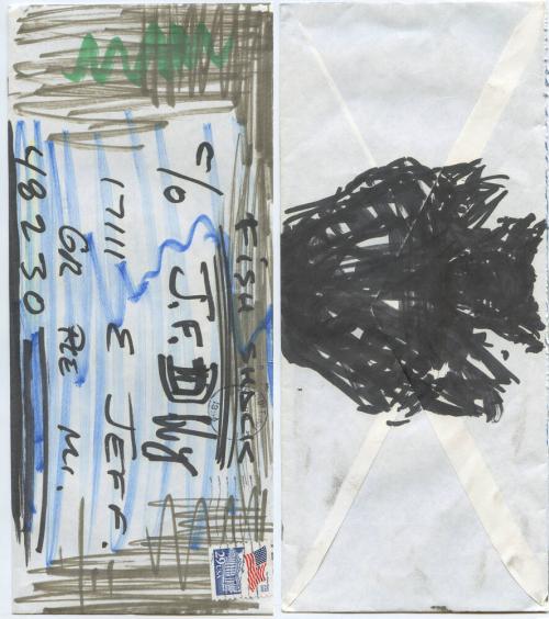 Description1 envelope, 7 pcs.: 1 letter, 4 drawings, 2 scraps