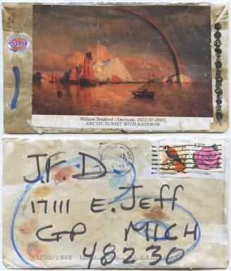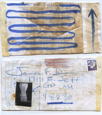 MediumPen, scraps on envelope; Pen, colored pencil, scraps on paper; Gouacch, colored pencil, pen, scraps on paper; Gouache, colored pencil, pastel on paper