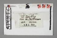 MediumMarker, tape, scraps on envelope; Charcoal, colored pencil, marker, glue, paper on paper