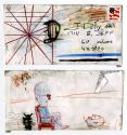 MediumWatercolor, colored pencil, charcoal, marker, tape on envelope; Charcoal, colored pencil on paper