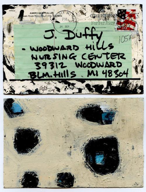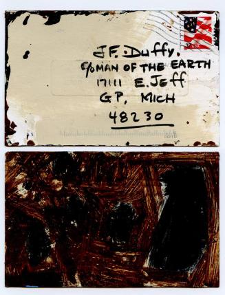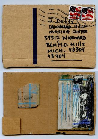 MediumPaint, ink, marker, pen, adhesive, scraps on postcard