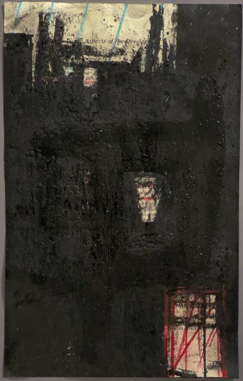 MediumCharcoal, paint, colored pencil, collage elements on book page