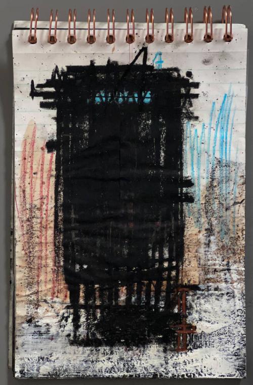 MediumCharcoal, colored pencil, tape on Steno pad paper