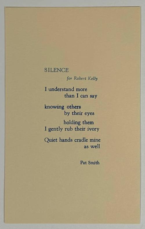 DescriptionLetterpress printed poem by Pat Smith titled, "SILENCE".SILENCE