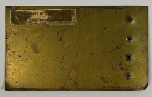 DescriptionOriginal metalwork by Carol Steen.Published by The Alternative Press.
