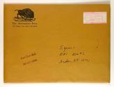 MediumLettepress printed text, ink handwriting, and stamps on Manila envelope